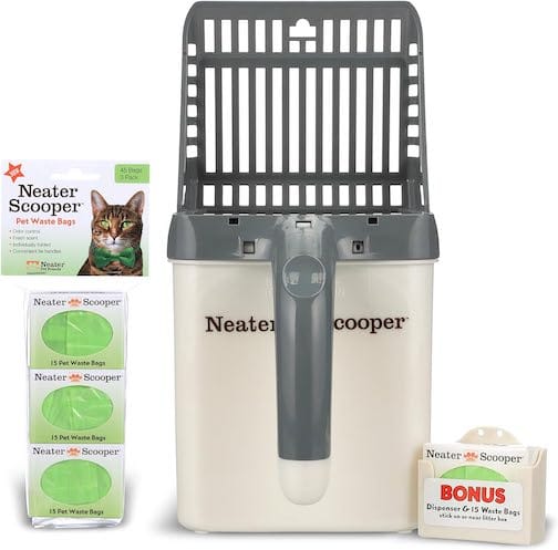 The Neater Scooper by Neater Pet Brands offers a unique, one-hand operation for cat litter cleaning, integrating a scoop with a waste bin. This design simplifies the task and keeps the surroundings clean. However, its durability and size might be limiting for some users, especially in multi-cat households.
